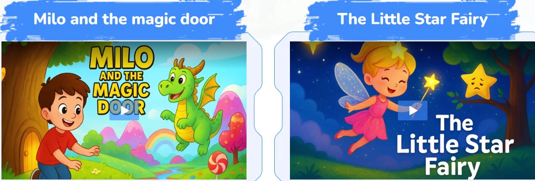 Prompt to Video Workflow: You type a prompt (or select one), and almost immediately the application generates the story framework, scenes, narration or rhymes, graphics, etc. In event that you do not like parts, you can regenerate them. Several Story Modes: Choices of telling or rhyming songs. This helps vary style.